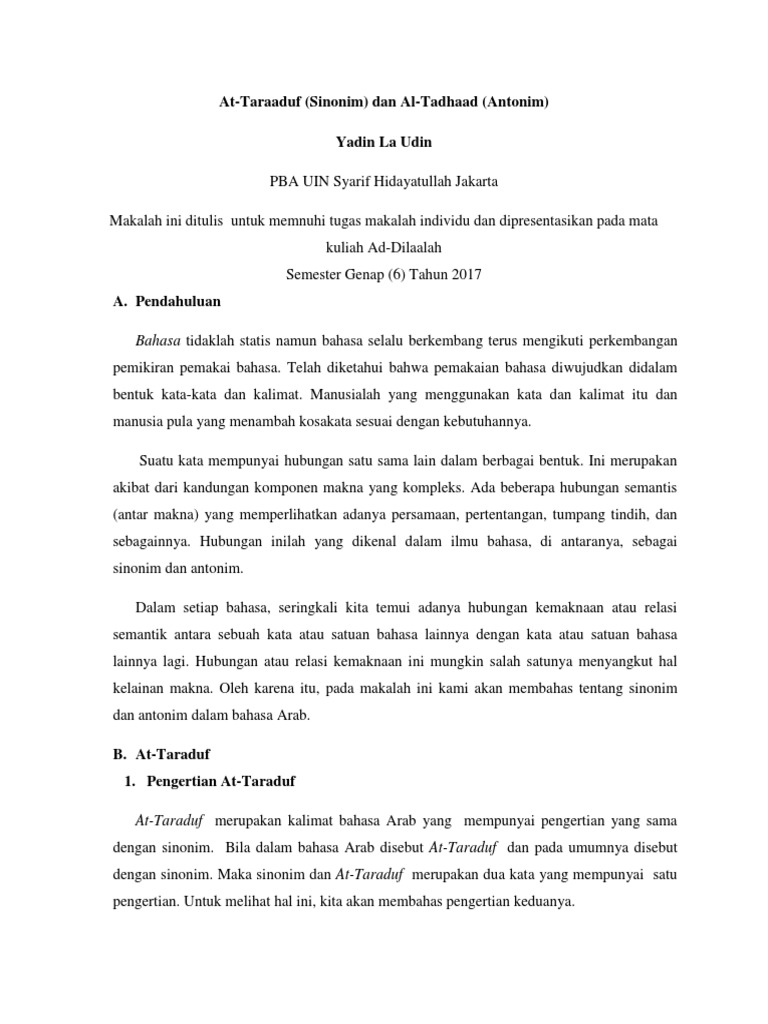 At Taraaduf Sinonim Dan Al Tadhaad Anton Pdf